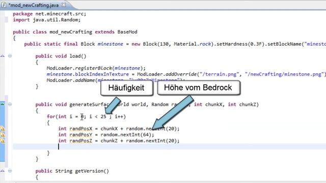 Minecraft Mod programmieren #018 - Block random generieren UPDATE [ModLoader] [German] [HD]