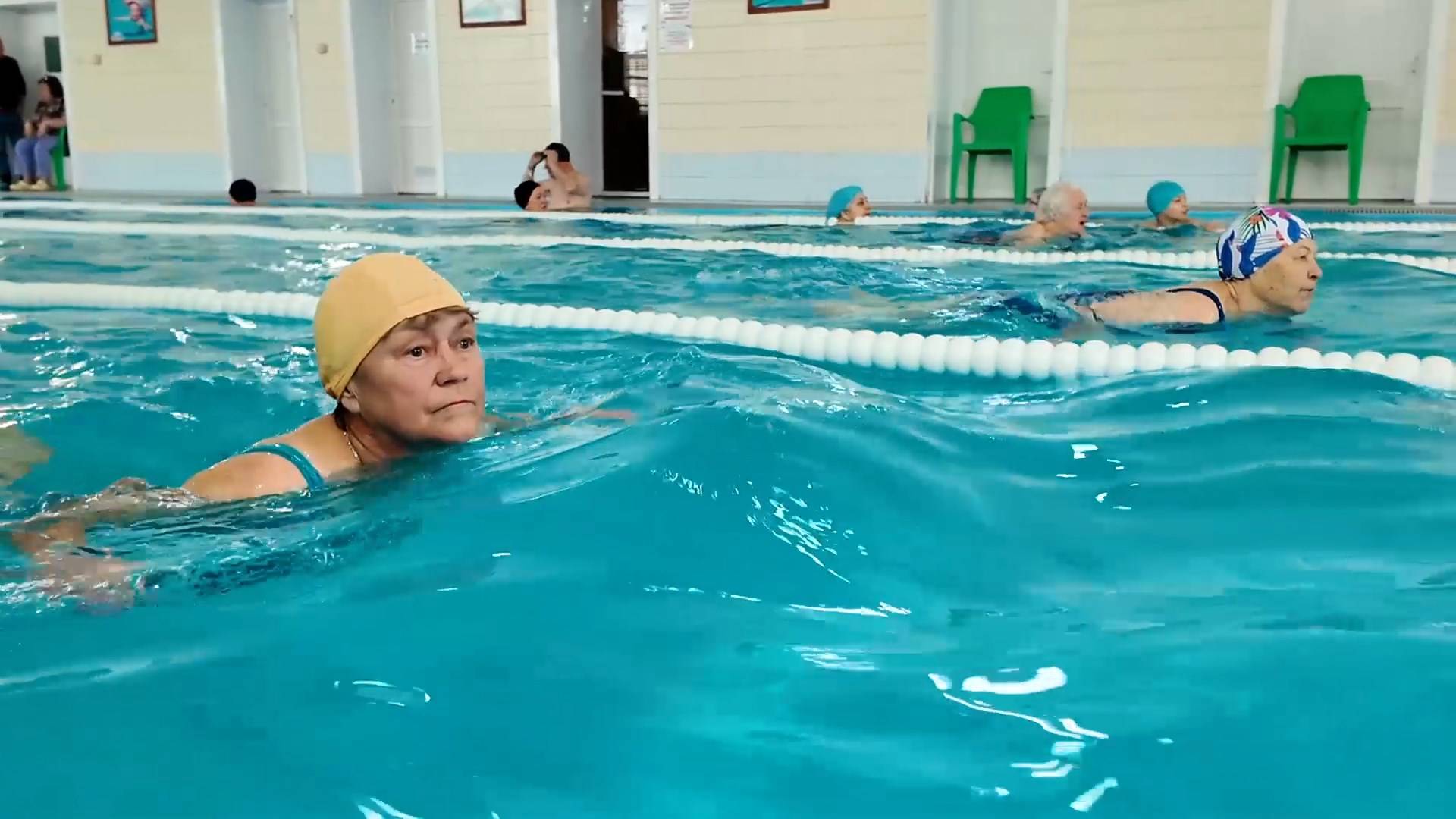 Пример здорового образа жизни. В спортивно-оздоровительном комплексе Копейска прошло первенство по плаванию для людей старшего возраста. Организаторами мероприятия выступили Совет ветеранов и ветеран спорта Элла Деккерт.