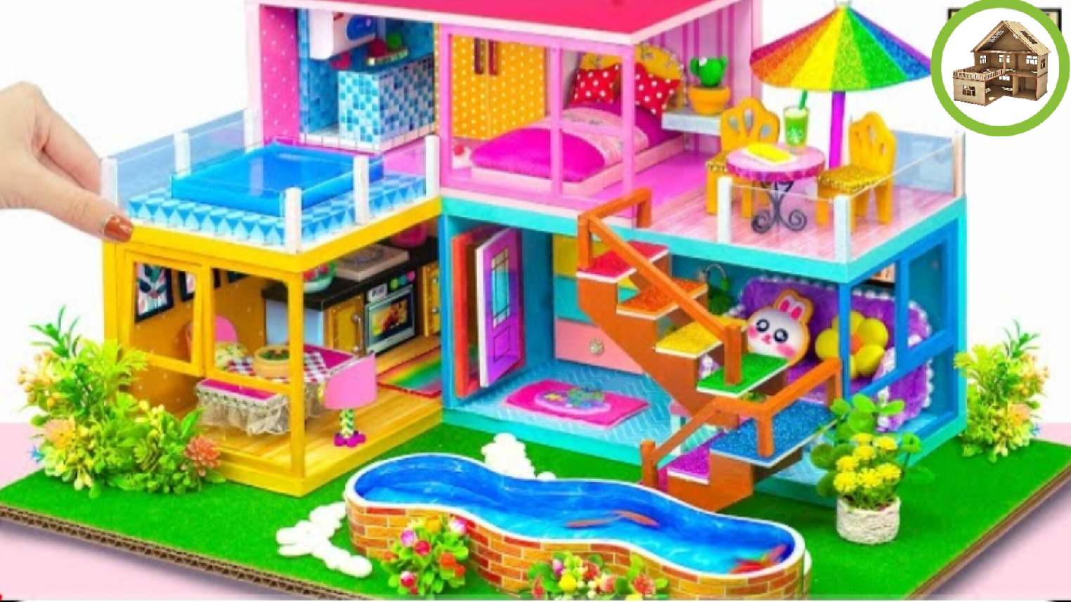 Миниатюрный курортное бунгало с 6 комнатами и с двумя мини-бассейнами для всех из картона /167
