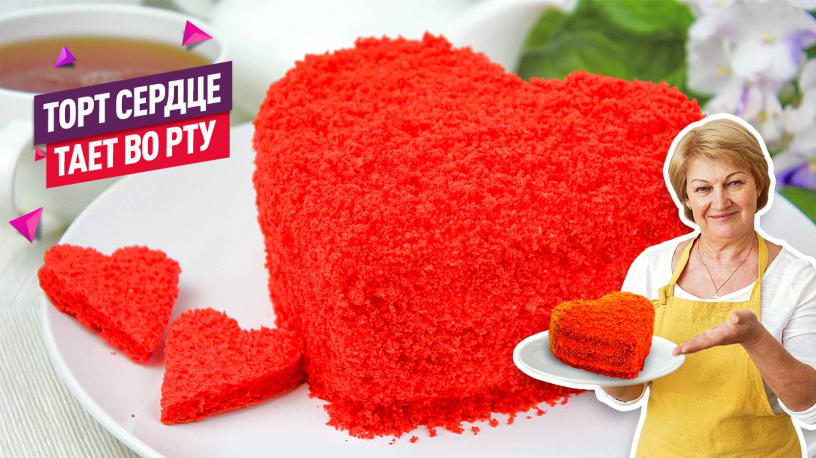 Торт "Сердце" - получается нежным, сочным, ароматным и просто очень вкусным. Невероятно нежный, воздушный бисквитный торт, а крем со вкусом сливочного мороженого, кусочек буквально тает во рту! Приготовьте такой чудесный торт и порадуйте своих близких вкусным десертом! Друзья! Если вам понравился рецепт, буду рада, если вы: Поделитесь этим видео со своими друзьями в соцсетях, а рецепт сохраните у себя на странице! Им будет приятна ваша забота, а им удобно!) Оценивайте рецепт! Так я пойму, что именно вам интересно видеть у меня на страничке! И задавайте вопросы в комментариях! Давайте общаться!) Текстовый вариант рецепта в Дзен: https://zen.yandex.ru/home_recipes_wi... Моя группа ВК: https://vk.com/my_home_recipes Мой канал в RuTube: https://home.strannik-j.org/channel/25715382/ Моя группа в Одноклассниках: https://ok.ru/homerecipes Добавляйтесь!) Ингредиенты: Яйца - 5 шт. Сахар - 120 г Соль - 1/4 ч. л. Мука - 100 г Миндальная мука (или измельченный миндаль) - 20 г Разрыхлитель - 1 ч. л. Ванильный сахар - 1 ч. л. Масло растительное - 30 мл. Молоко - 30 мл. Пищевой краситель красного цвета - 1-2 ч. л. Для крема: Сыр маскарпоне охлажденный - 250 г Охлажденные сливки 33-35% - 250 мл. Сахарная пудра - 50 г Ванильный сахар - 1 ч. л. Противень 34х41 Разогреть духовку до 190 °С. Приготовим бисквитный корж 1 Яйца, соль, взбиваем миксером до мягкой пышной пены. Добавляем ванильный сахар и небольшими порциями всыпаем сахар, продолжаем взбивать до крепких пиков и полного растворения сахара. 2 Добавляем растительное масло, молоко, перемешиваем. 3 Добавляем пищевой краситель красного цвета, перемешиваем. 4 Муку смешиваем с разрыхлителем и просеиваем в яичную массу. Добавляем миндальную муку. Размешивать аккуратно, в одном направлении снизу вверх, чтобы не было мучных комочков и сохранить пышную массу взбитых белков. 5 Противень (размер34х41) застелить пергаментной бумагой для выпечки. Вылить тесто и аккуратно разравнять, чтобы слой теста был ровный. Выпекать бисквит при температуре 190 градусов 12-15 минут. Тесто при нажатии пальцем будет пружинить, вверх сухой, значит бисквит готов. Готовый бисквит достать из духовки и дать остыть. 6 Бисквит накрыть сверху пергаментной бумагой, перевернуть, снять бумагу и вырезать 3 заготовки для торта формой сердца (размер 18Х4,5см.). 7 Обрезки теста измельчить в крошку. 8 Приготовить крем. Сыр маскарпоне, жирные сливки, размешать миксером до однородности. Затем добавить сахарную пудру, взбить в крем. 9 Собираем торт. На блюдо выложить корж, смазать его кремом. Затем опять корж, также промазать кремом, корж, крем. Не жалейте крема, торт должен хорошо пропитаться. Оставшимся кремом смазать верх и края торта. 10 Украшаем крошкой. Равномерно распределить крошку поверх крема и аккуратно прижать, чтобы потом крошка не сильно осыпалась. Убираем торт в холодильник на 3-4 часа, для стабилизации крема и чтобы крошка пропиталась кремом. Торт "Сердце" готов! Приятного аппетита! #БисквитныйТорт #ВыпечкаОтКоршиковойЛюбови #РецептыОтКоршиковойЛюбови #КоршиковаЛюбовь #Торты
