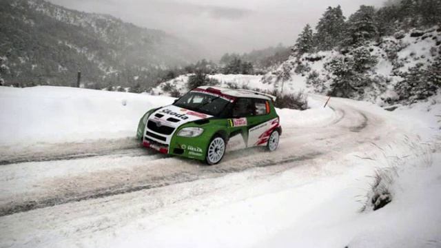 immagini del rally montecarlo 2009 dedicate alla nuova skoda fabia s2000 di juho hanninen e jan kopecky. sottofondo musicale infinity