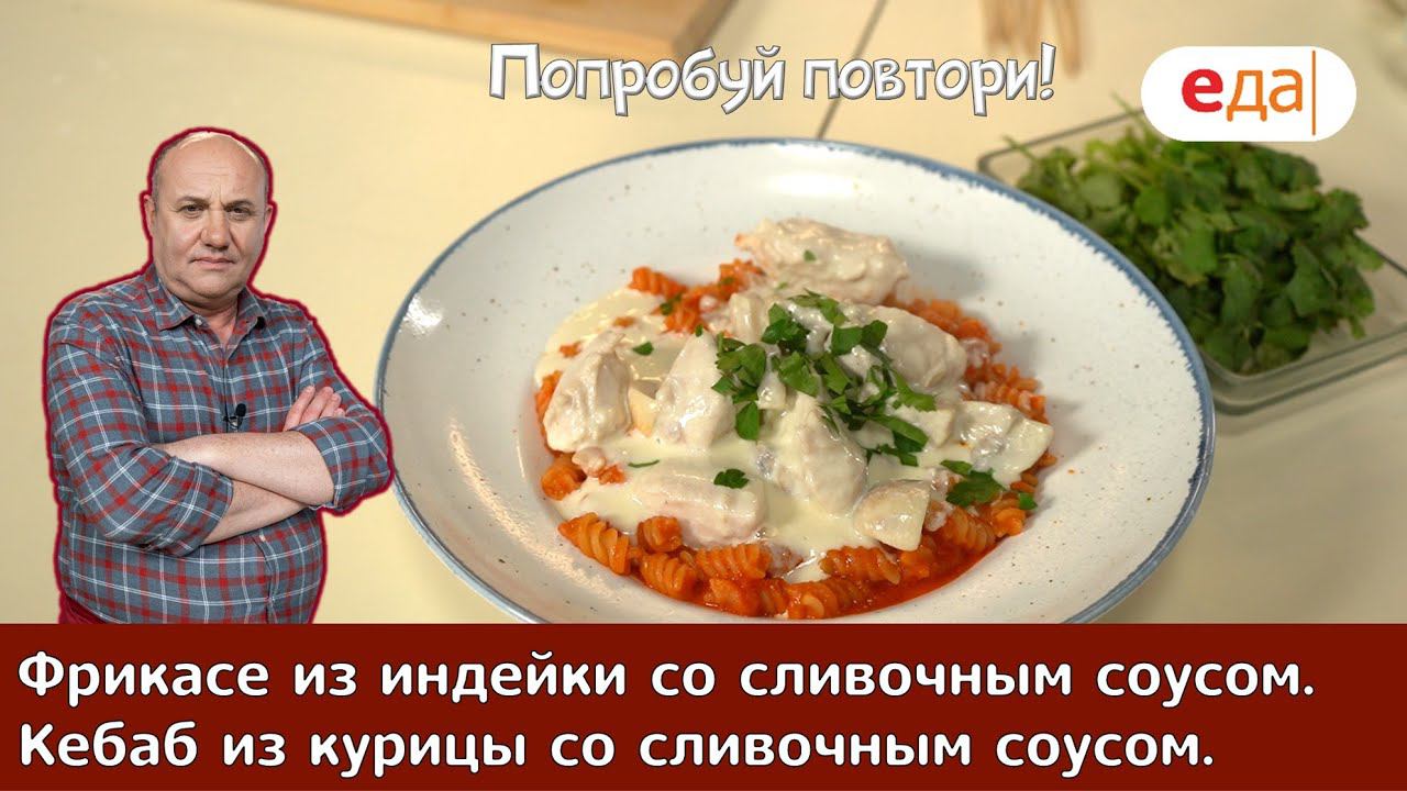 Кухня по заявкам | Фрикасе из индейки со сливочным соусом. Мини-кебабы из курицы | Илья Лазерсон