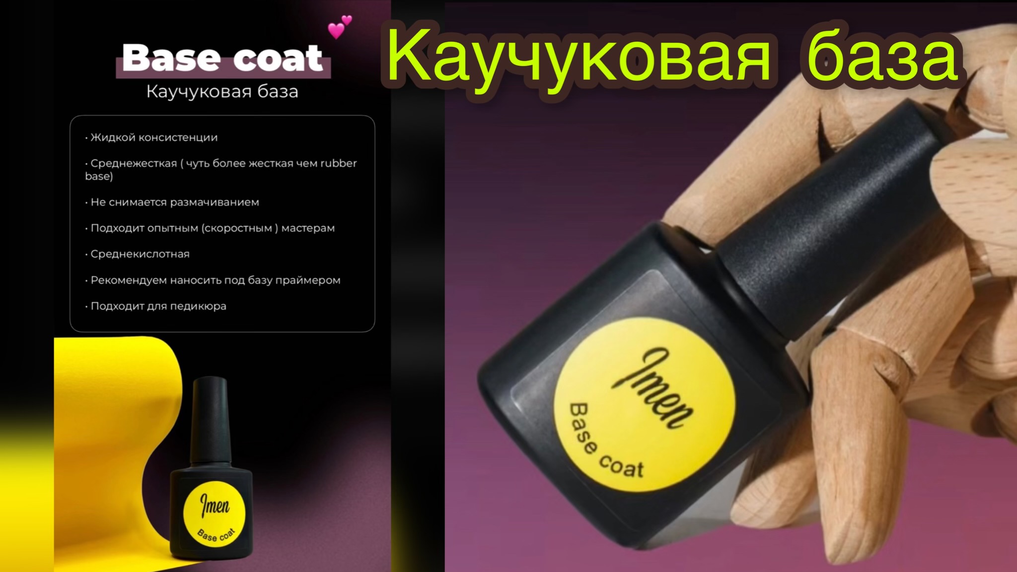 Поговорим с вами об ещё одной нашей базе? Base coat Каучуковая база . Жидкой консистенции · Среднежесткая ( чуть более жесткая чем rubber base) . Не снимается размачиванием • Подходит опытным (скоростным) мастерам • Среднекислотная • Рекомендуем наносить под базу праймером • Подходит для педикюра WILDBERRIES 15мл- арт.19927052 https://www.wildberries.ru/catalog/19927052/detail.aspx?targetUrl=MS&size=52495787 OZON 15мл- арт. 231119160 https://ozon.ru/t/75ZnXGW Онлайн магазин www.imennails.ru