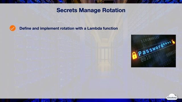► In this episode, you'll learn: - AWS Secrets Manager helps you protect access to your services, applications and IT resources - Secrets Manager encrypts secrets at rest using encryption keys, that you own and store in AWS KMS #AWS #AWSCertification #AWSTraining -------------------- ► AWS Certifications & Training: - AWS Certified Cloud Practitioner - AWS Certified Developer Associate - AWS Certified Solutions Architect Associate - AWS Certified SysOps Administrator - AWS Certified DevOps Engineer - AWS Certified Solutions Architect - AWS Certified Advanced Networking Specialty - AWS Certified Security Specialty - AWS Certified Machine Learning Specialty - AWS Certified Alexa Skill Builder Specialty - AWS Certified Data Analytics Specialty - AWS Certified Database Specialty -------------------- ► We're all-around Cloud & AI learning. - Cloudemy is a cloud learning provider. We focus on providing training courses for AWS, Azure, GCP cloud, modern AI and machine learning technologies. At Cloudemy, we’re passionate about Cloud and AI technology. Please share your feedback and thoughts in the comments below. Feel free to let us know what topics you'd like to watch. Happy watching and happy learning.