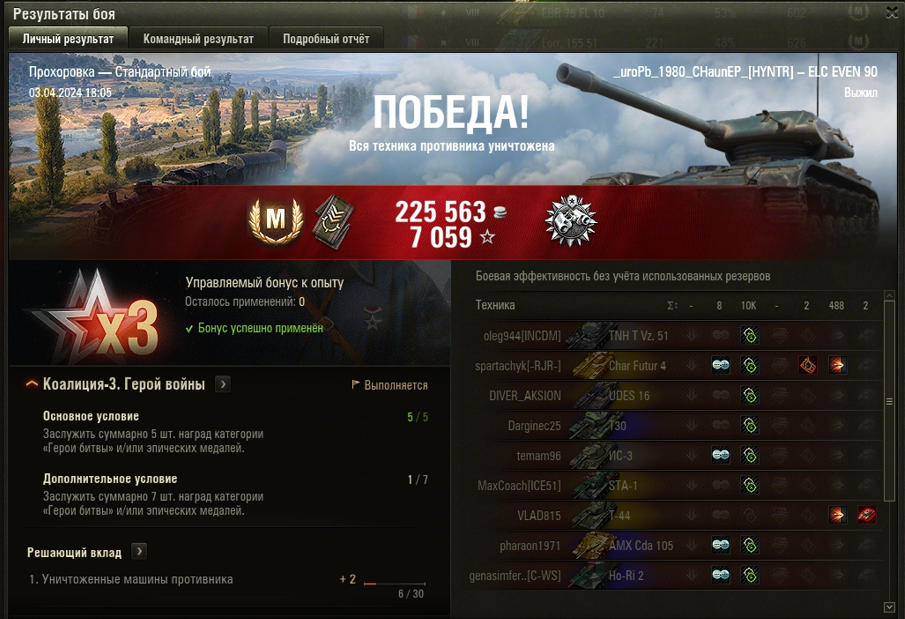 ПРОХОРОВКА МАСТЕР на ELC EVEN 90 ОПЫТ: 1518 СУММАРНЫЙ УРОН: 10607 медаль ДОЗОРНЫЙ
