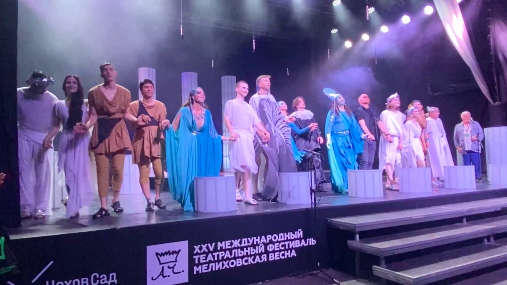 В видео вы увидите усадьбу Антона Павловича Чехова, открытую сцену, фрагменты из спектакля, поклоны и вручение памятной статуэтки.