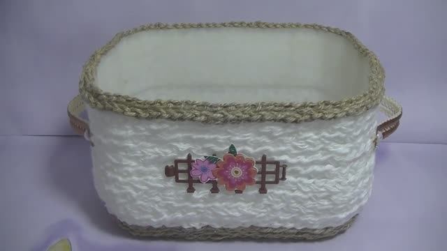 ВЯЗАННАЯ КОРЗИНОЧКА ИЗ ПЛАСТИКОВОЙ КАНИСТРЫ И ПРОСТОЙ ПРЯЖИ !!.mp4