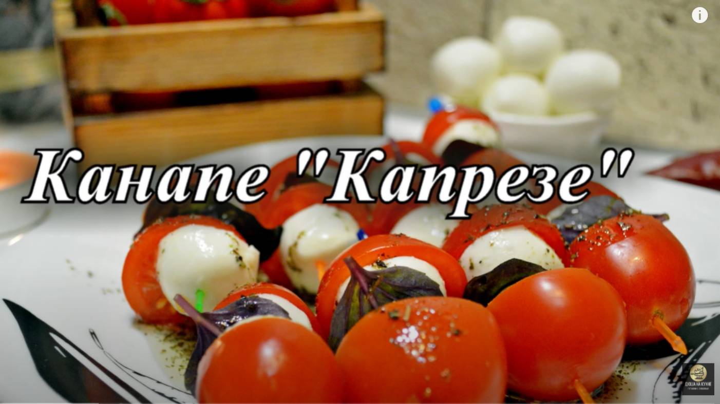 Салат Капрезе. Закуска с помидорами и сыром. Рецепт канапе. Рецепт закуски.