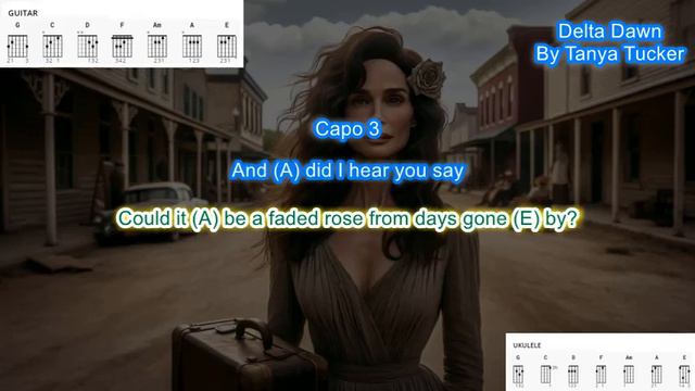 Delta Dawn (Capo 3) by Tanya Tucker play along with scrolling guitar chords and lyrics