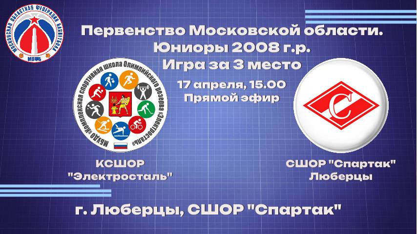 ПМО. Юноши 2008 г.р. Игра за 3-е место. 17 Апреля 15:00 КСШОР "Электросталь"- СШОР "Спартак"