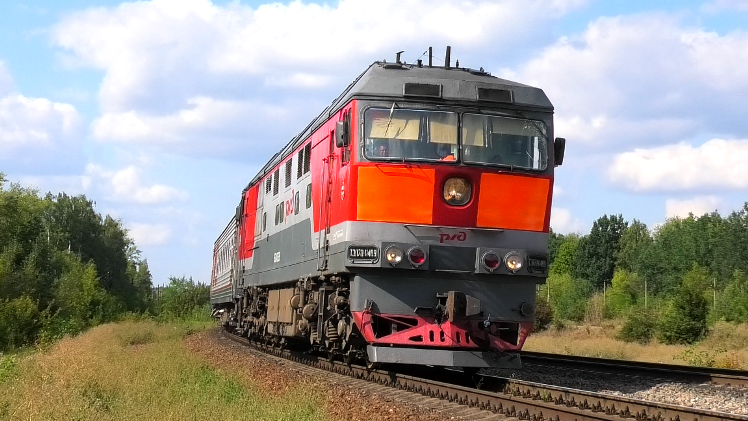 Тепловоз ТЭП70-0489 с туристическим поездом №929Щ "Жемчужина Кавказа" Москва (Павелецкий вокзал) – Новороссийск – Кисловодск – Грозный – Махачкала – Дербент – Волгоград – Москва (Киевский вокзал) следует по перегону Телегино - Елец. Юго-Восточная ЖД. Липецкая область, Россия. Приписка: ТЧЭ-14 Елец-Северный. 14.08.2021