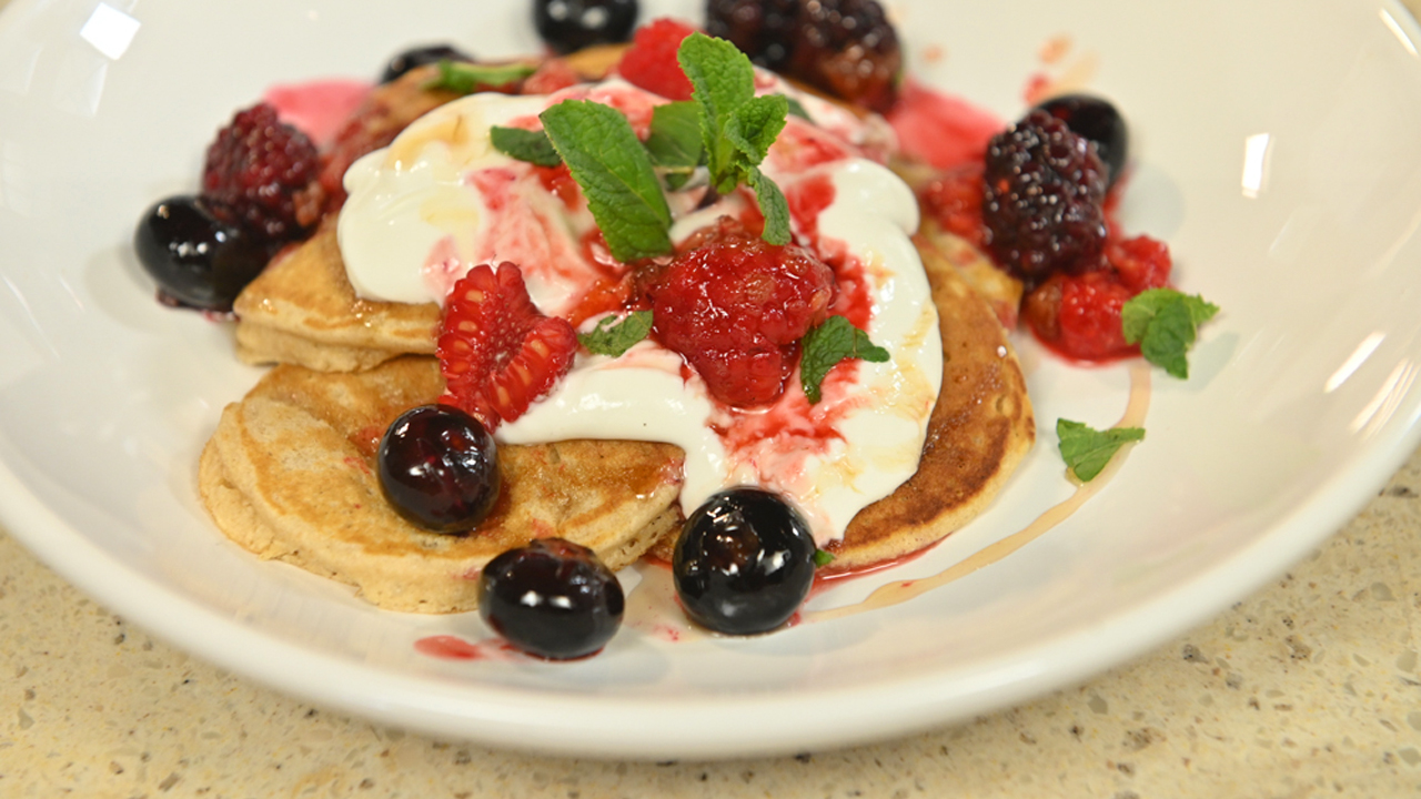 Оладьи из овсяной муки с кленовым сиропом