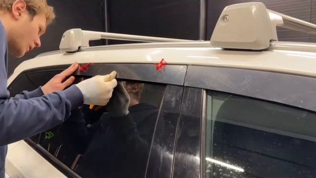 Видео установка 2Д дефлекторов окон / плоские ветровики на Volvo V90 Cross Country/ Вольво В40 Крос