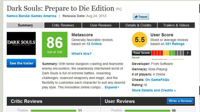 Dark Souls PC - 35% Metacritic score