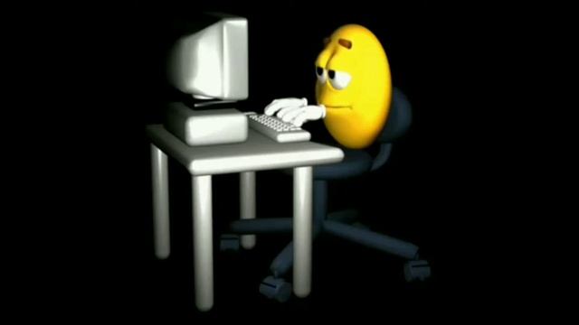 Жёлтый шарик с лицом сидит за компьютером и что-то печатает. Фулл мема из тик тока.