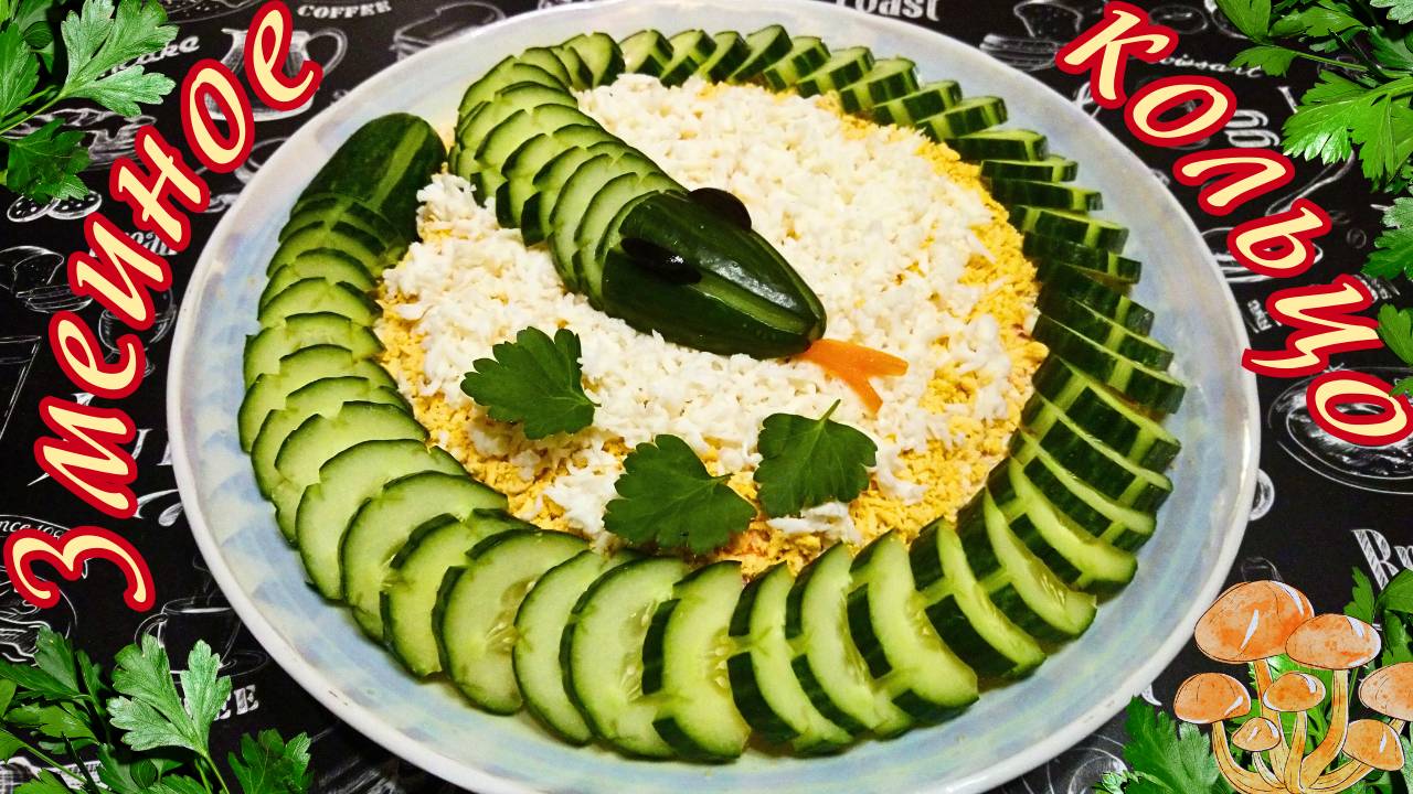 САЛАТ "ЗМЕИНОЕ КОЛЬЦО" С КУРИЦЕЙ И МАРИНОВАННЫМИ ГРИБАМИ / Праздничный салат на год Змеи