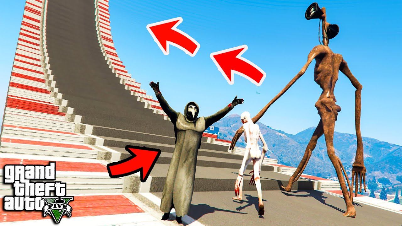 КАК ДАЛЕКО СИРЕНОГОЛОВЫЙ СКРОМНИК И ЧУМНОЙ ДОКТОР СМОГУТ ЗАБРАТЬСЯ ПО СТУПЕНЬКАМ В ГТА 5 МОДЫ!