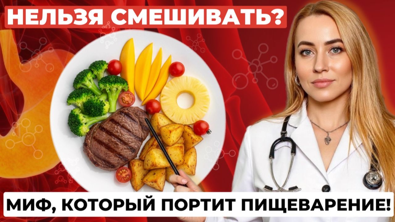 Можно ли смешивать продукты? Почему говорят, что фрукты нельзя есть после еды, мясо — с гарниром, а рыбу — с яйцами? Правда ли, что неправильное сочетание продуктов вызывает вздутие, токсины и тяжесть в желудке? В этом видео врач-гастроэнтеролог и диетолог Ольга Евдокимова подробно объясняет, какие сочетания продуктов действительно важны, а какие — просто миф, не имеющий под собой ни одного научного доказательства. Вы узнаете: — Откуда взялся миф о «несовместимости продуктов» — Почему желудок прекрасно переваривает белки, жиры и углеводы одновременно — Какие комбинации действительно полезны (например, витамин С + железо) — Как специи могут улучшить пищеварение и снизить вздутие — В каких случаях смешивание продуктов может реально вызывать дискомфорт 💡 Это видео поможет вам перестать бояться еды, вернуть удовольствие от приёмов пищи и понять, что наука, а не мифы должна определять ваше питание. Посмотрите также: Почему фрукты не враги: миф о сахаре во фруктах https://home.strannik-j.org/video/89270db8c8d28cb6f6ecd43f11766038/?r=wd 7 шагов по восстановлению ЖКТ бесплатный урок от Ольги Евдокимовой: https://clck.ru/3Ck2du Подписывайтесь Телеграм-канал, там вы найдете ещё больше материалов о здоровье ЖКТ, доказательной диетологии и работе печени: https://t.me/+4RFJHilj2YY3NWI6 📲 Подписывайтесь на канал, ставьте лайк и делитесь этим видео с друзьями, которые до сих пор боятся «опасных сочетаний продуктов».
