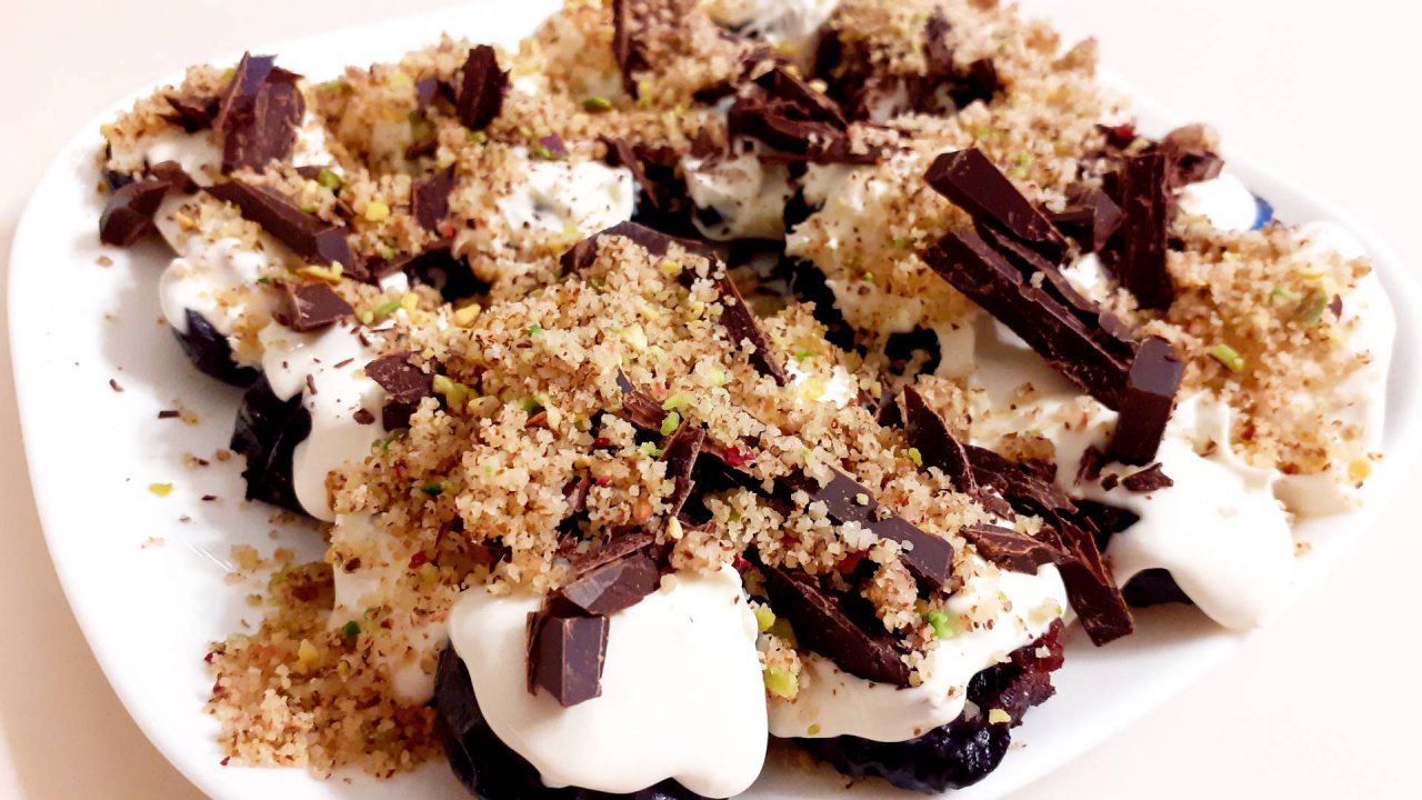 __ Рецепт чернослива с грецким орехом в сметане. Ингредиенты: 1. Крупноплодный чернослив (без косточки) - 20 шт; 2. Грецкие орехи - 20 шт; 3. Шоколад (любой) - 30 гр; 4. Ореховая крошка - 30 гр; 5. Сметана для заливки. __ Мой Телеграмм канал: https://t.me/sladkiimaster _ Поддержи канал: Юмани кошелёк: 4100 1546 2997 635 PayPal: dusiagrusha@gmail.com ___ Проверяйте чернослив тщательно на наличие осколков от косточек; Замочить чернослив в тёплой, кипячёной воде; Сметану желательно не меньше 20% жирности; Сливки вместо сметану только густые (отвесные); Хранить десерт в холодильнике не более 3х суток.