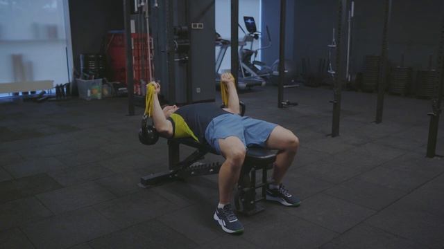 Жим гирь на резине лежа на скамье