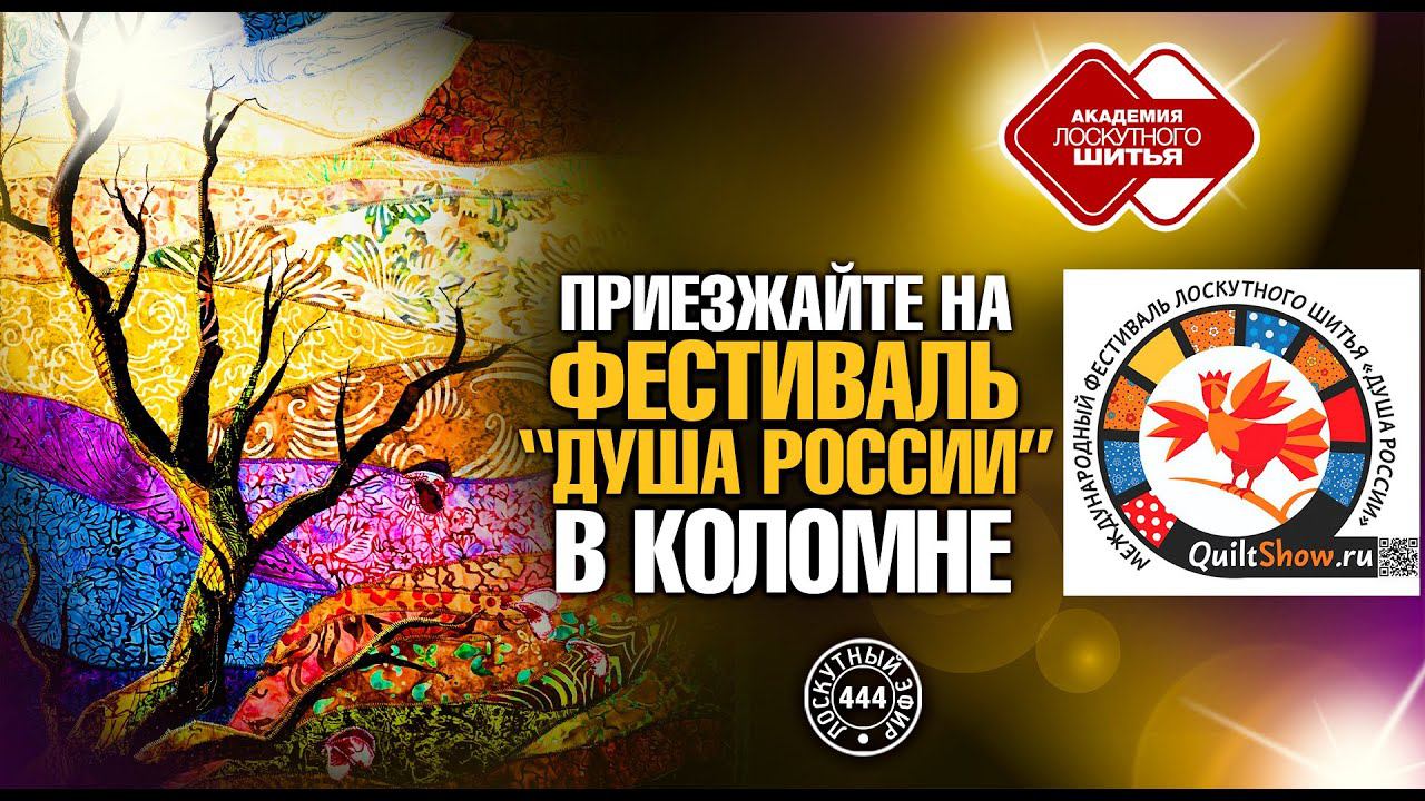 Содержание эфира: 00:00 Начало видео. 00:23 Вступление. 02:30 Кому и в какое время стоит ехать на фестиваль. 03:42 Обзор мастер-классов. 09:41 Выставочное пространство "Кузнечная слобода". 12:43 Места проведения выставки. 14:04 Культурно-массовые мероприятия. 15:17 Местные достопримечательности, которые стоит посетить. 16:15 Чем добраться? 16:51 Заключительное послесловие. 17:02 Финальный клип. 17:26 Конец видео. Полезные ссылки: 1) Демо-доступ в Лоскутный Клуб на 7 дней : https://quiltlada.getcourse.ru/shablon_copy?utm_source=xeyt&utm_medium=070622Kol&utm_campaign=444Kolomna_anons 2) Лоскутный клуб. Творческая площадка для общения начинающих и опытных лоскутниц: https://course.quiltlada.ru/Loskutclub?utm_source=xeyt&utm_medium=070622Kol&utm_campaign=444Kolomna_anons 3) Бесплатный вебинар по лоскутному шитью ""Волшебная формула лоскутного одеяла"": http://quiltlada.ru/webinar?utm_source=xeyt&utm_medium=070622Kol&utm_campaign=444Kolomna_anons 4) Запись бесплатного вебинара: https://youtu.be/Wun7PqtuEUU?utm_source=xeyt&utm_medium=070622Kol&utm_campaign=444Kolomna_anons 5) Отзывы выпускниц курса «Ремесло»: https://course.quiltlada.ru/keys_first?utm_source=xeyt&utm_medium=070622Kol&utm_campaign=444Kolomna_anons 6) Учебный курс «Ремесло»: https://quiltlada.getcourse.ru/special?utm_source=xeyt&utm_medium=070622Kol&utm_campaign=444Kolomna_anons 7) Учебный курс ""Удивительные приключения лоскутных квадратов"". Простые и понятные пошаговые онлайн-курсы по лоскутному шитью для новичков, любителей и профессионалов. Создай более 20 уникальных лоскутных одеял. https://quiltlada.getcourse.ru/academie_Quadrat_29900?utm_source=xeyt&utm_medium=070622Kol&utm_campaign=444Kolomna_anons 8) Учебный курс ""Цветоведение"" Получи пошаговый план подбора тканей для лоскутных работ. Пройди обучение с Мастером, автором 9 книг по лоскутному шитью. Освой основы цветоведения за 19 простых уроков. Собери свое авторское лоскутное панно https://quiltlada.getcourse.ru/page_zwetowedenie?utm_source=xeyt&utm_medium=070622Kol&utm_campaign=444Kolomna_anons 9) Другие курсы и учебный магазин: https://quiltlada.getcourse.ru/sets?utm_source=xeyt&utm_medium=070622Kol&utm_campaign=444Kolomna_anons 10) Бесплатный доступ к программе обучения: https://clck.ru/XW8MT ✅ Социальные сети: ⇨Instagram https://www.instagram.com/quiltlada_handmade/ ⇨Фейсбук https://www.facebook.com/quiltlada ⇨В контакте https://vk.com/academie_ls Подпишитесь на наш Я.Дзен: zen.yandex.ru/id/603f7e7d3aa41b6a231dfbfb ✅ Подписывайтесь на YouTube-канал: https://clck.ru/FjgfA Академия Лоскутного Шитья - четко структурированная, пошаговая система обучения лоскутному шитью, в равной степени комфортная для новичков, любителей и профессионалов. Подписавшись на курс ""Ремесло"" https://quiltlada.getcourse.ru/special?utm_source=xeyt&utm_medium=070622Kol&utm_campaign=444Kolomna_anons Вы получаете проверенную методику, как дома, в комфортной обстановке, без стрессов и долгой дороги, на любимой швейной машине, ⏰в удобное вам время научиться всем базовым и продвинутым техникам лоскутного шитья. Курс обучения создан совместно с признанным методистом, Заслуженным Мастером России Ириной Юрьевной Мухановой, автором 9 книг по лоскутному шитью. Ирина Юрьевна лично курирует ваше обучение и дает обратную связь по вашим домашним работам. Обучающий курс ""Ремесло"" проходите в комфортном для вас режиме. Длительность занятия и частоту уроков вы выбираете сами. Обычно полный курс обучения занимает 6 -12 месяцев. По мере прохождения курса Вы приобретаете навыки, которые позволят вам создавать изумительно хорошие лоскутные вещи для вашей семьи, участвовать в выставках, фестивалях и конкурсах и зарабатывать добротным ремеслом. Практикующие врачи убеждены, что занятия лоскутным шитьем развивают мелкую моторику, улучшают здоровье, зрение и настроение и способствуют предотвращению деменции. Увидеть полную программу Академии Лоскутного