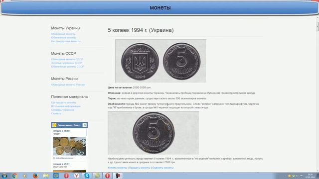 Деньги монеты 5 копеек 1994года