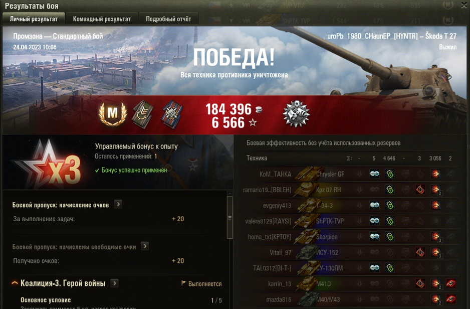 ПРОМЗОНА МАСТЕР на Škoda T 27 ОПЫТ: 1412 СУММАРНОГО УРОНА: 7702 медаль ДОЗОРНЫЙ