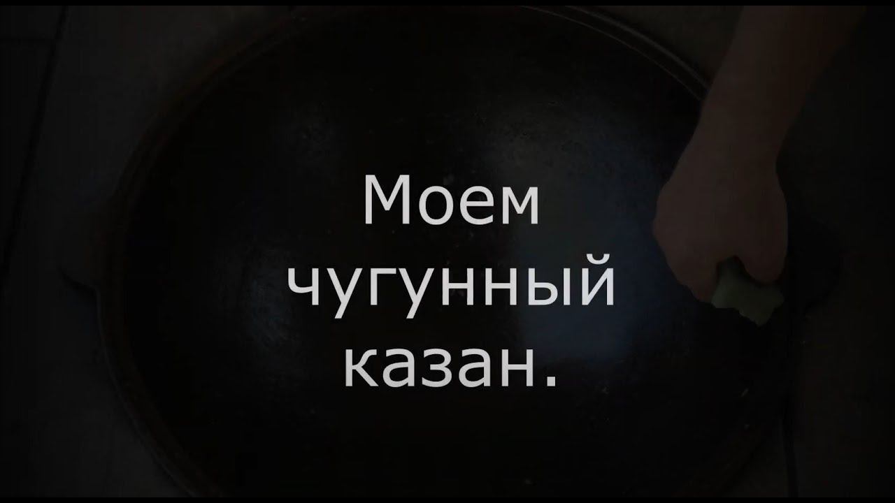 Моем чугунный казан. Тяжелый. Чугунный казан 22 литра это конечно не 200 но все равно тяжелый и перетащить его к месту мойки, поворачивать, вертеть ополаскивать трудно - он реально тяжелый независимо какой толщины стенка. Кипяток, губки, салфетки (ветошь), Казан такого размера мне легче вымыть на месте. Я мою так уже не первый раз. Обезжиривающие средства на мыльной основе не использую. Губка и мягкая и грубая сторона. Весь процесс можно разделить на 3 этапа. Очистка -удаление пищевых остатков. Кипячение. Протереть чистой салфеткой или полотенцем, и промазать маслом. В этот раз после 20 ти минутного кипячения, состояние стенок никак меня не устроило. Пришлось кипятить еще минут 30. Стенки стали гладкие, губка сделала свое дело. Вычерпал воду. Сегодня использую салфетку. Можно и лучше ветошь. Нанести тонкий слой масла. Верю что следующий плов будет очень скоро. Использовать моющее средство можно, пары капель будет достаточно. Не нужно только применять металлические губки. Я пробовал, антипригарный слой царапается, а это нехорошо. Мне интересно сохранить его целым и наблюдать за ним долго. Что я делаю не так... Возможно для лучшего результата на заключительном этапе, перед обработкой маслом можно еще налить чистой воды и прокипятить. Пишите, ругайте; приму любую критику, советы и пожелания. Спасибо вам за просмотр