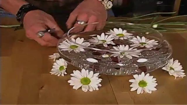 http://www.RussOnFlowers.com Welcome to Russonflowers.com. Enjoy, as Russ Phillip Jr. revisits creating floating flower arrangements and vasing. This week Russ creates beautiful arrangements using a small and a 9" lotus bowl with clear stone accents. He features Stargazer Lillies, Asiatic Lillies, Spider Mums and Daisies. You can create these simple arrangements using single, multiples of the same or mixed flowers. Russ answers the following questions on the show today: 1) what types of flowers are edible? 2) is steve single? 3) what is the average cost of flowers for a wedding? 4) why are you in to flowers so much? 5) do you ever personally deliver flowers? Green tip: After your wedding, make a plan to have the flowers delivered to a nursing home or a hospital instead of throwing them out.