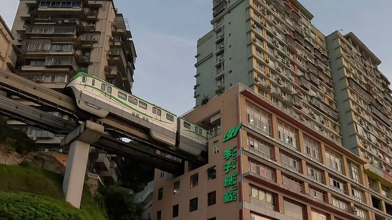 Чунцин. Монорельс проезжает через дом