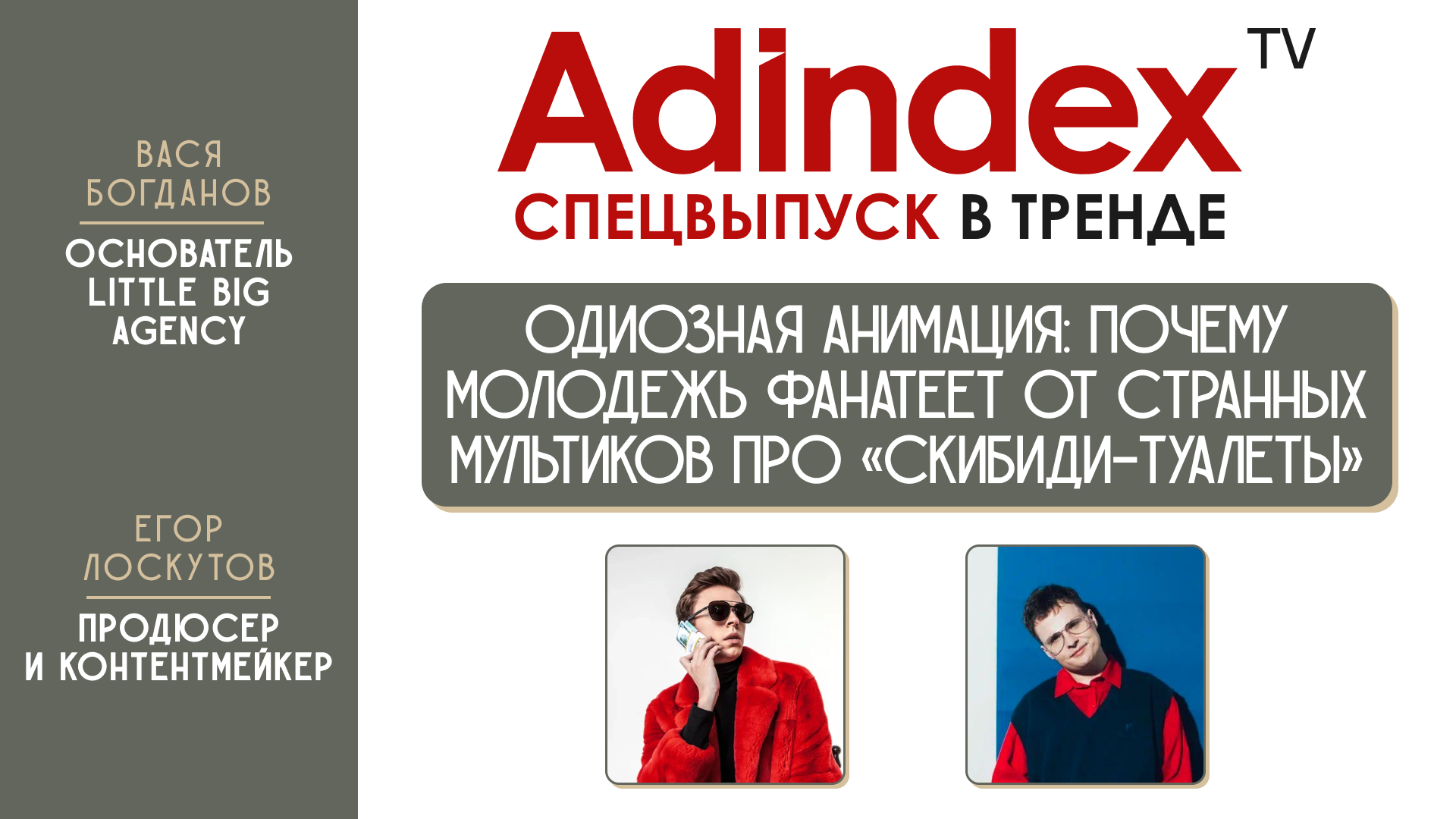 В новом спецвыпуске «В тренде» Вася Богданов, основатель Little Big Agency и Егор Лоскутов, продюсер и контентмейкер, обсудят: – Почему в интернете завирусился видеопроект «Скибиди-туалеты» и какой «идеальный рецепт» вирусного видео можно вывести из этого проекта. – Как анимационные тренды трансформируются в Fake 3D и что ждет этот формат рекламы. – Как бренду вести себя в анимационном мире метавселенных и в каком случае имеет смысл в них заходить.