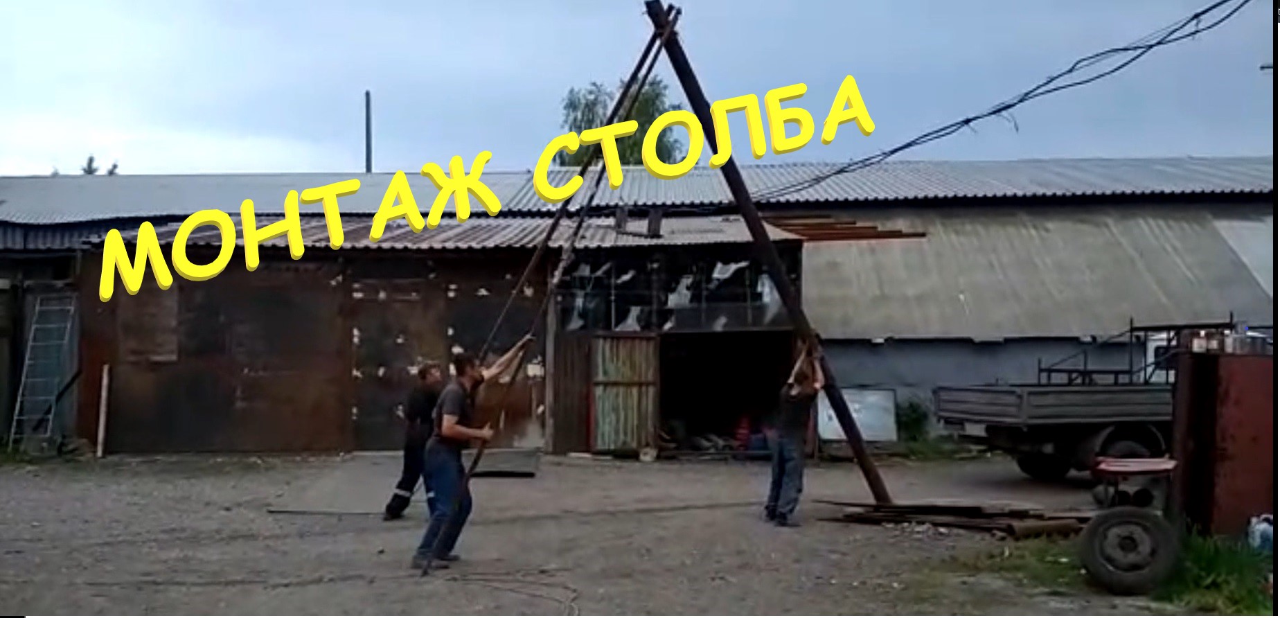 Монтаж тяжёлого столба в ручную. Ржака. Чип.