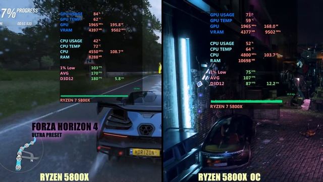 AMD R7 5800x stock vs OC (4.8ghz) - gaming performance test. Test system details Room ambient Temp - 30 degrees CPU - AMD ryzen 7 5800x stock speed & 4.8ghz oc 1.4 volt , CPU Cooler - Hyper 212 black GPU - Zotac holoblack amp RTX 3070 ti 8GB triple fan Motherboard - Asus x570 tuf gaming Memory - Gskill ripjaws v 3600mhz 2x8gb (16-16-16-36) CASE - silverstone fara r1 atx , inwin 303 atx Power - corsair tx 750watts, cooler master masterwatt 650 watts SSD/Nvme - WD SN550 1TB NVMe , HDD - 2TB seagate 7200 rpm OS - Windows 10 pro OS build 21H1 Monitor - Benq (pd27q 1440p), acer cb281 vmreviews vmreview80@gmail.com