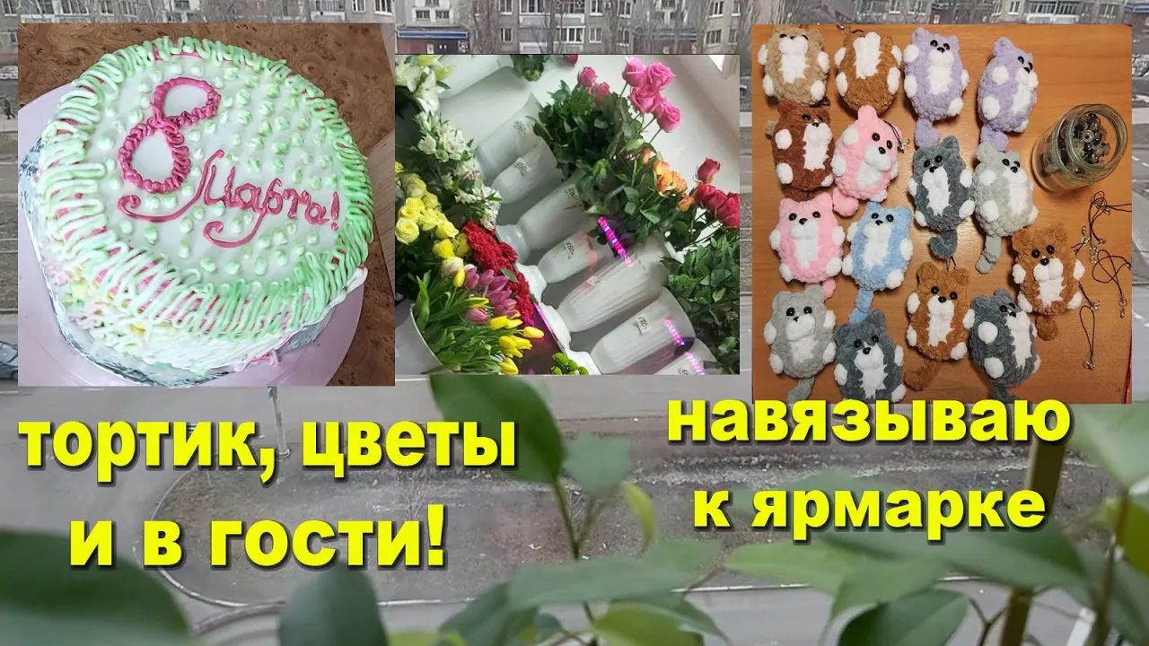 Цветы, тортик и в гости! Спонтанное украшение торта! Влюбляюсь во всё, что вяжу!Навязываю к ярмарке!