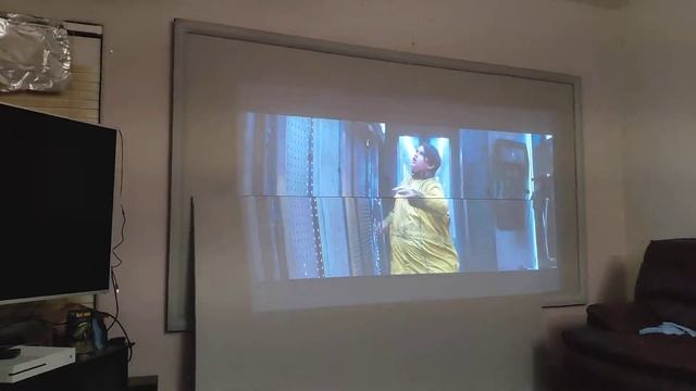 120" PhantomHD gray with Epson 1060 Darbee movies lights off and on. Cinema setup under $1000