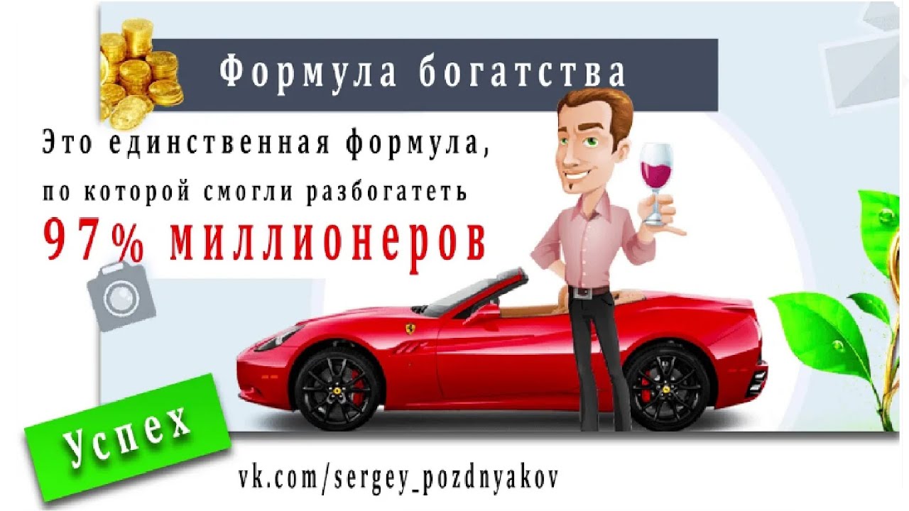 Формула богатства | Как жить жизнью своей мечты | Финансовая грамотность Первое – заработать. И это совсем не означает пойти на работу и пахать. «Заработать» – означает каким-то образом создать деньги. Создать бизнес и получить доход. Вложить деньги и получить какие-то дивиденды. Пойти на работу. Неважно как, главное заработать, создать деньги! Второе – накопить. То есть, отложить! То есть, тратить не все, что зарабатывается. Третье – это умножить. То есть, то количество денег, которое у вас отложено, нужно умножать, еще больше выжимать из этого денег. «Заработать – накопить – умножить» - вот она, формула богатства! - Подписывайтесь на мой канал в YOUtube https://www.youtube.com/channel/UCQBy3iEELc0ltPAt_gkCkOQ - Я в Яндекс Кью https://yandex.ru/q/profile/PozdnyakovBlogger/ - Я VK https://vk.com/sergey_pozdnyakov - Я в TikTok https://www.tiktok.com/@sergey_pozdnyakov - Я в Яндекс Дзен https://zen.yandex.ru/id/608c778a1f08643617f9a192 - Моя БИБЛИОТЕКА https://vk.com/market-11000336?section=album_1 - #Формула_богатства #Богатство #Деньги #Успех #Как_стать_богатым