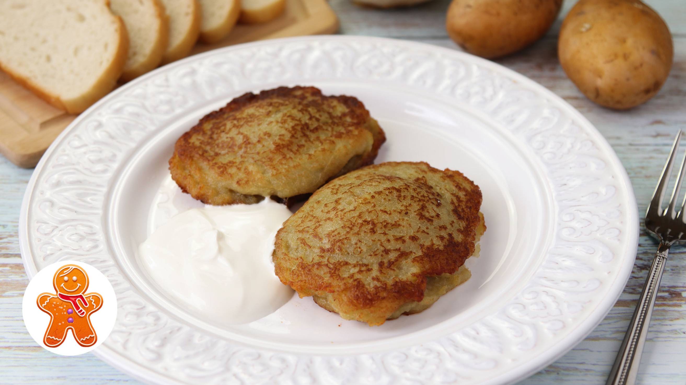 5 крупных клубня картофеля 1 луковица 3-4 ст. ложки муки соль перец 150-200 г мяса и 1 луковица для начинки обжаренный лук или сметана для подачи