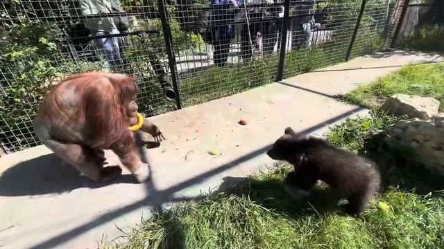 Вот это ДА! Олег Зубков знакомит медвежат Топу и Кнопу с добрым орангутаном Даной!Кто кого БОИТСЯ?