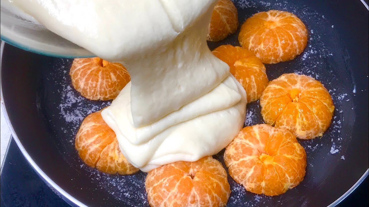 Взяла мандарины и залила их тестом. Лакомством без духовки на скорую руку.