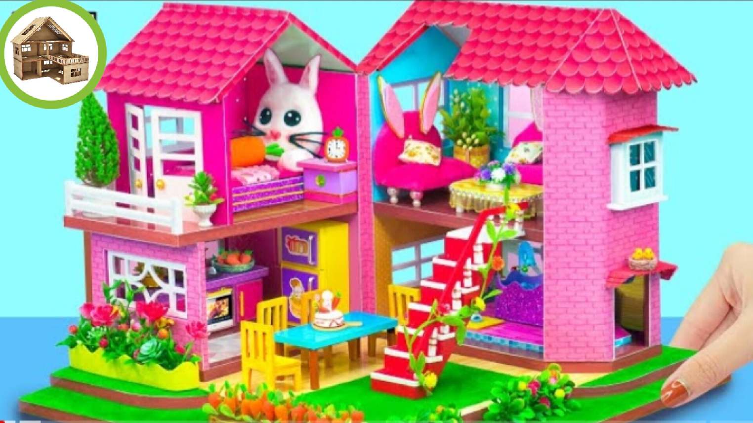 Милый миниатюрный двухэтажный кроличий замок с четырьмя удивительными комнатами из картона /252