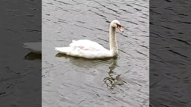 белый лебедь на пруду