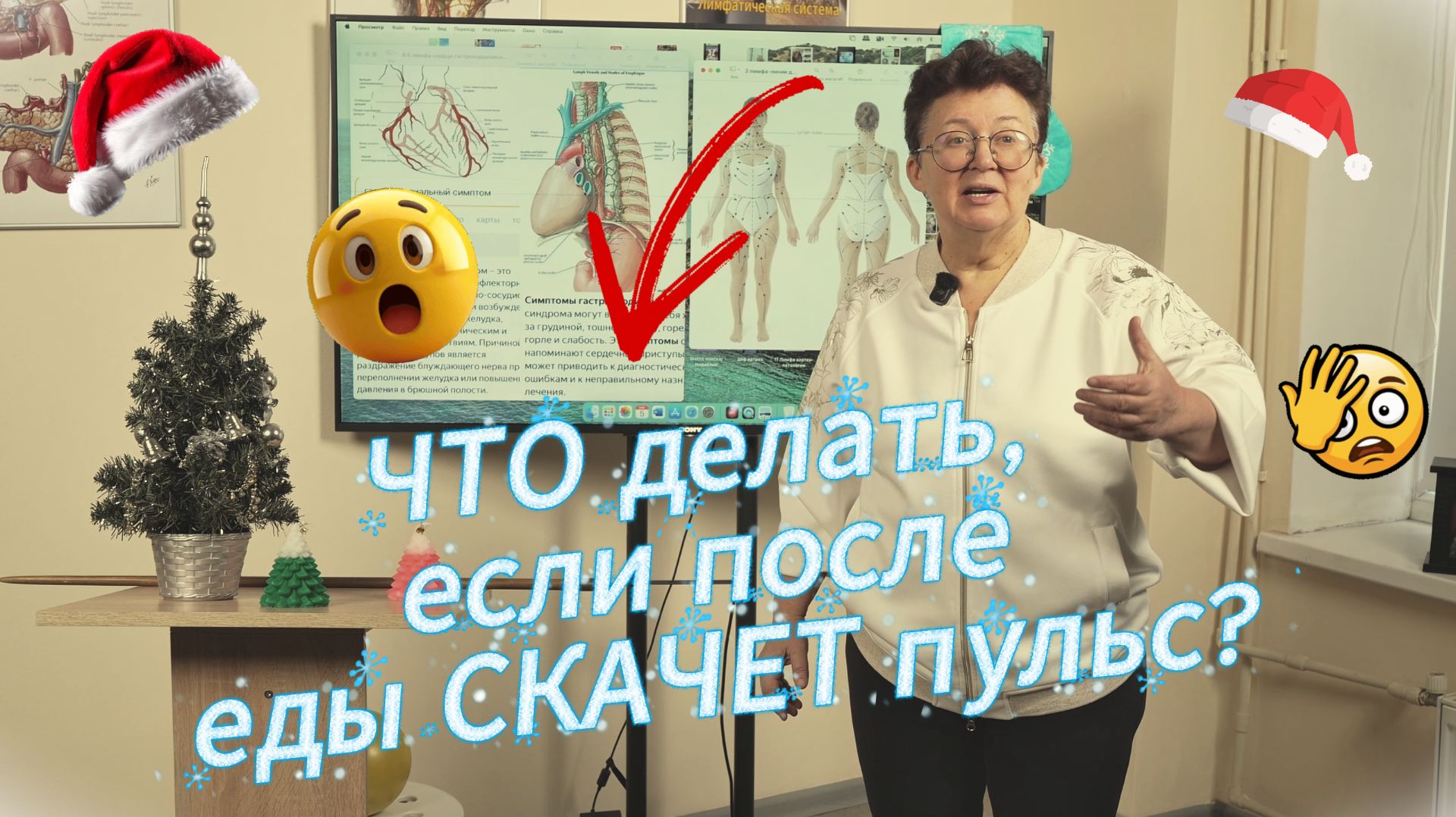 👉 https://olgashishova.courses/onlayn-kursy/2759/ 👆 Более подробно о курсе по ссылке сверху! 🛒 Интернет-магазин «Целиус»: Лучшие товары для вашего здоровья — смотреть каталог (https://olgashishova.ru/katalog/) С Рождеством, дорогие друзья! 🕊️✨ Замечали, что после праздничного стола иногда «скачет» пульс или возникает неприятное ощущение в груди? Это частая причина вызовов скорой в эти дни — гастрокардиальный синдром. Всё просто: переполненный желудок давит на сердце через диафрагму, смещая его. И сердце отвечает аритмией. Не нужно паниковать! Есть простое решение: Поднимите руки вверх — это опустит диафрагму. Возьмите утяжеление (пакет соли, бутылку воды, мячик) и подержите его за спиной, походите так. Медленно поднимайте его вверх и в стороны. Почему это работает? Это упражнение: ✅ Механически «освобождает» сердце от давления желудка. ✅ Улучшает отток лимфы и венозной крови от грудной клетки. ✅ Помогает сердцу вернуться в нормальное положение. Поздравляю вас с праздником! Пусть ваше Рождество будет светлым, а сердце — спокойным и здоровым. ❤️