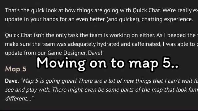 Innersloth finally posted a dev log on what is coming next to the game Among us. So far quick chat is getting a rework, along with some new phrases we will able to use! and yes dave from innersloth is cooking on map 5, we did not get any info but at the moment it seems like this map will come out possibly by late 2023, according to the wiki. thanks for watching :] Discord server: https://discord.gg/AuZyvbXg Have a great day everyone! -Frostor