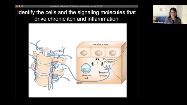 Acute pain acts as a warning signal that alerts us to noxious stimuli in our environment that are potentially tissue damaging. Likewise, itch sensations trigger reflexes that protect us from diseases that insects may be carrying. Despite these essential protective functions, itch and pain can outlast their usefulness and become chronic debilitating conditions that affect millions of people worldwide. Dr. Diana Bautista, a UC Berkeley professor, will summarize what is known about the biology of itch, touch, and pain then focus on her latest research identifying novel mechanisms that drive chronic itch, chronic pain, and inflammatory disease. She leads the Bautista Lab at UC Berkeley. Hosted by Prytanean Society 0:00 Introduction to the lecture 1:55 Introduction to Dr. Diana Baustista 2:51 Lecture 32:05 Questions