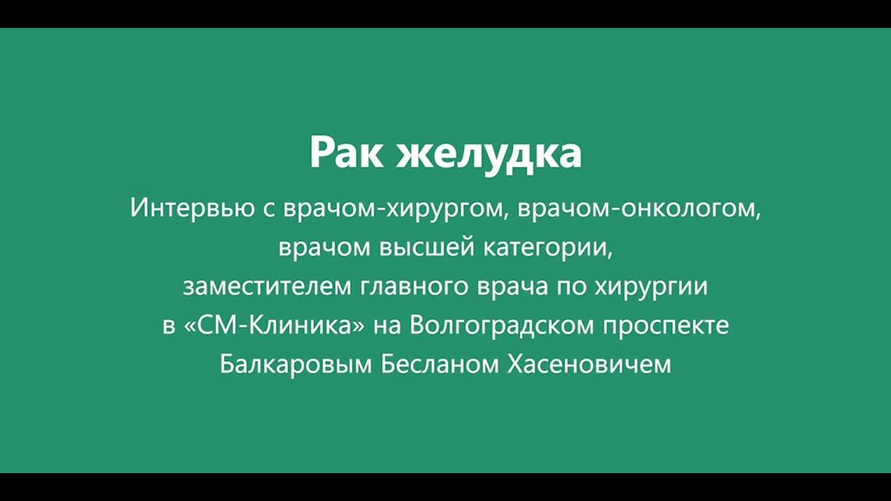 Рак желудка занимает пятое место среди наиболее распространенных видов злокачественных новообразований. Причем, как правило, болезнь из-за отсутствия явных симптомов дает о себе знать достаточно поздно, что значительно затрудняет лечение. О том, почему возникает рак желудка, что можно сделать для профилактики развития болезни, как ее диагностируют и лечат (в том числе, в Онкоцентре «СМ-Клиника»), каковы прогнозы и возможности современной медицины, -рассказывает врач-онколог, хирург высшей категории Беслан Хасенович Балкаров. Запись на прием: на сайте https://www.oncology-centr.ru/ в WhatsApp-чат: https://wa.me/79266980689 или по телефону 8 (495) 846-72-83 Имеются противопоказания. Необходима консультация специалиста.