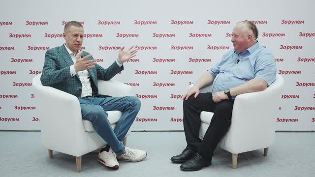 Главный редактор журнала "За рулем" Максим Кадаков беседует с Алексеем Подщеколдиным, президентом Российской ассоциации автомобильных дилеров (РОАД).