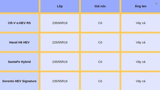 Trong video này hãy cùng kênh So sánh Xe so sánh Honda CRV e:HEV RS 2023 vs Haval H6 HEV vs Hyundai SantaFe Hybrid vs KIA Sorento HEV Signature. Xem thêm: CX-5 Premium vs Territory vs Tucson ĐB vs Sportage 2.0G Signature vs Outlander Premium vs 3008 AT: https://youtu.be/b-EIP8seNhw Nếu bạn thấy video này hay và hữu ích thì nhớ nhấn Like và Đăng ký kênh để ủng hộ mình nhé! Cảm ơn bạn đã theo dõi video, xin chào và hẹn gặp lại.