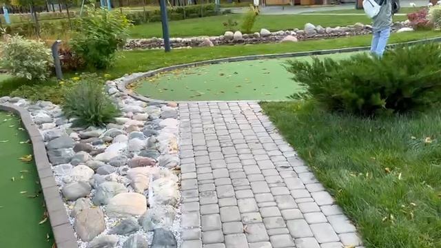 обзор пруда и маленького поля для гольфа которые находятся в парке Покровский берег