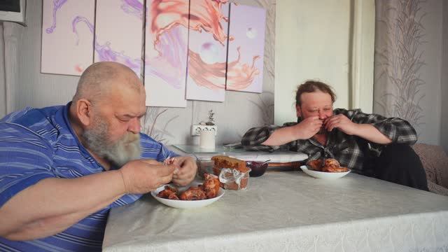 Мама Галина купила продукты, а сын с отцом вкусно кушают на кухне. Жизнь в Сибири.