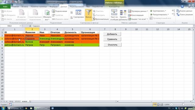 Сравнение данных в MS Excel
